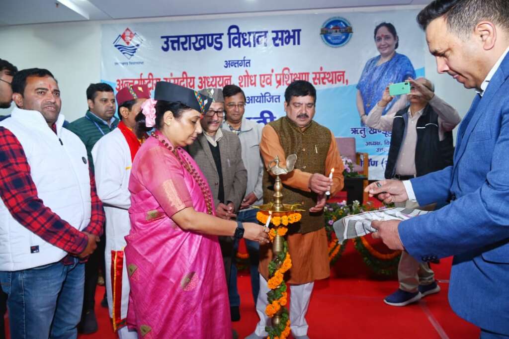 देहरादून: उत्तराखंड विधानसभा अध्यक्ष एवं कोटद्वार विधायक ऋतु खण्डूडी भूषण ने भराड़ीसैंण (गैरसैंण) स्थित विधानसभा भवन में अंतरराष्ट्रीय संसदीय अध्ययन शोध एवं प्रशिक्षण संस्थान के तत्वाधान में आयोजित दो दिवसीय संगोष्ठी “स्थायी रोजगार सृजन विकसित उत्तराखंड का आधार” का दीप प्रज्वलित कर शुभारंभ किया।