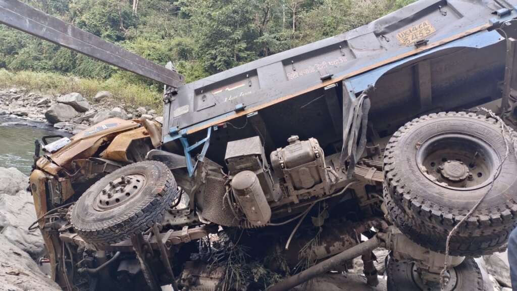 एन एच 534 के पांचवे मील के पास गिरा डंपर,ड्राइवर की मौत,