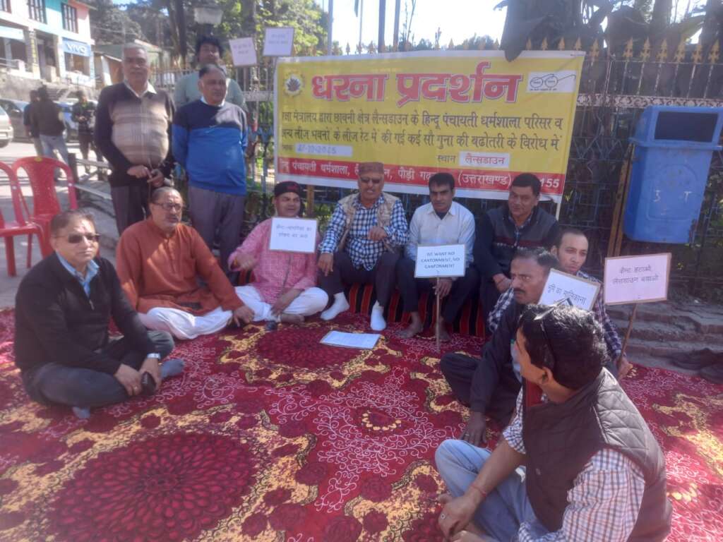 लैंसडाउन में हिन्दू पंचायत धर्मशाला की लीज दर में भारी बढ़ोतरी से लोगों में नाराजगी,दिया सांकेतिक धरना