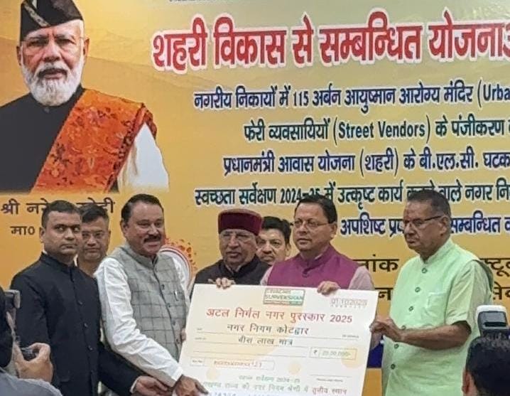 देहरादून/कोटद्वार: स्वच्छता सर्वेक्षण 2024 में कोटद्वार नगर निगम ने इतिहास रचते हुए उत्तराखंड में तीसरा स्थान हासिल किया और राष्ट्रीय स्तर पर भी लंबी छलांग लगाई।इस उपलब्धि का श्रेय लेने वालों में होड़ सी मच गई।वैभव गुप्ता के नेतृत्व के चलते ही यह सम्मान कोटद्वार को मिला ओर उनकी कार्यशैली को मुख्यमंत्री ने पारदर्शिता से देखते हुए “अटल निर्मल नगर” सम्मान मिला।पूर्व नगर आयुक्त,वर्तमान सहायक आयुक्त व उनकी पूरी टीम के चलते ही वर्तमान मेयर को इस सम्मान को लेने का सुअवसर मिला।मुख्यमंत्री पुष्कर सिंह धामी ने राजधानी देहरादून में कोटद्वार नगर निगम को “अटल निर्मल नगर” पुरस्कार प्रदान किया और 20 लाख रुपये की धनराशि का चेक भी भेंट किया।यह क्षण पूरे कोटद्वार के लिए गर्व का है…लेकिन इसके पीछे सबसे बड़ी भूमिका तत्कालीन नगर आयुक्त वैभव गुप्ता की रही…जिन्होंने अपने कार्यकाल में स्वच्छता अभियान को नई दिशा दी।